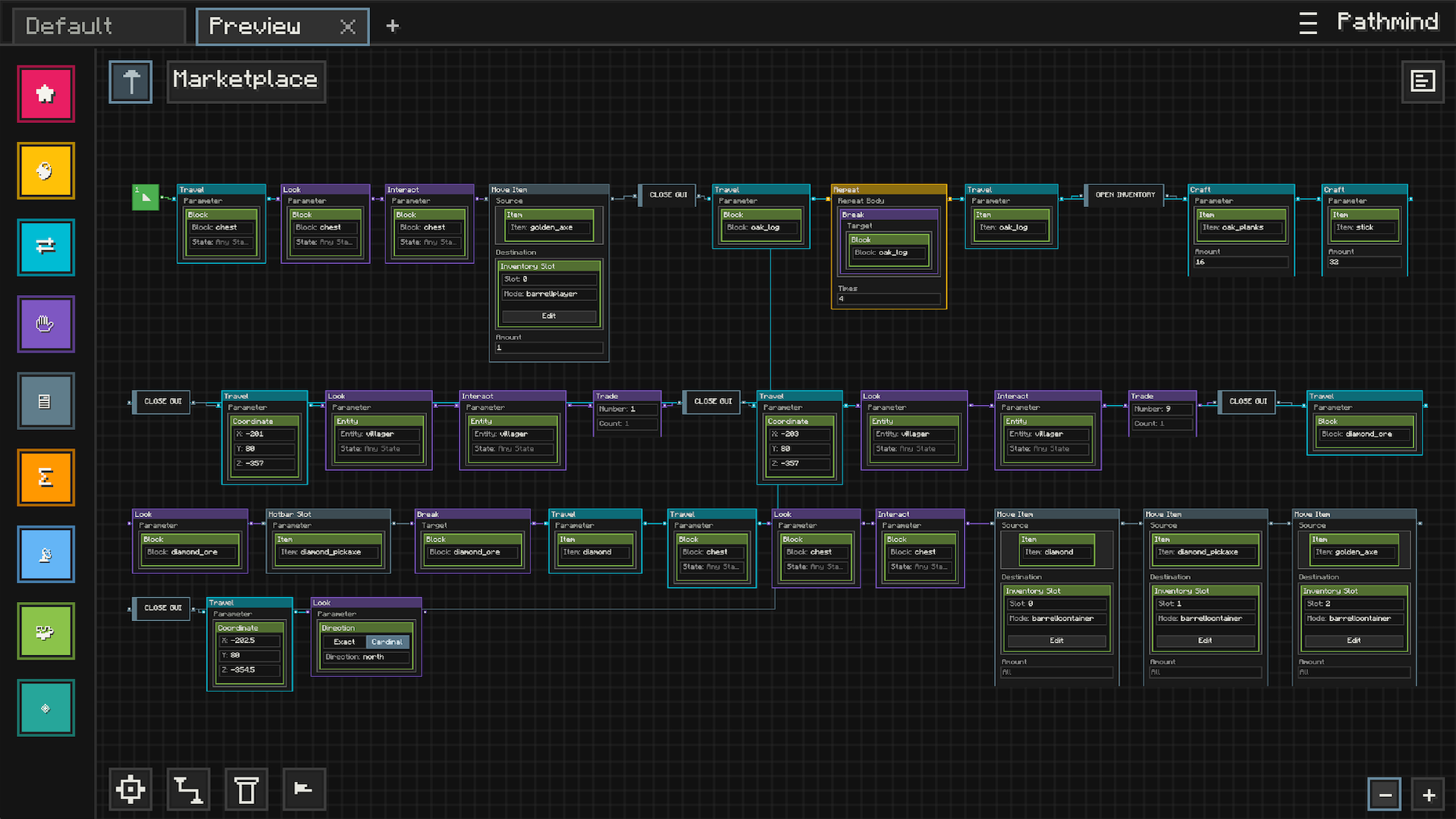 - Movement Automation: Build workflows around movement, navigation, and world interaction